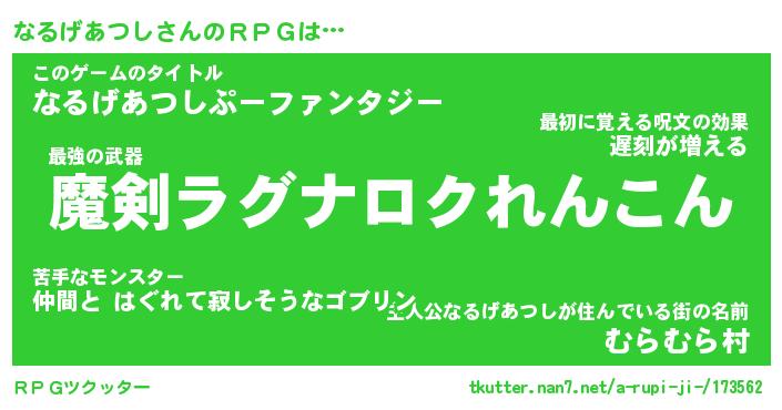 | 男性向けラノベタイトル風あだ名 | 『なるげあつしの憂鬱』 |