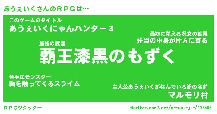 | 伝説のあだ名 | 『封印されしスナイパーあうぇいく』 |