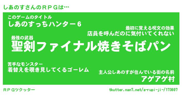 | 胡散臭い通販商品みたいなあだ名 | 『必ず成功するブレスレット…その名も「しあのす」』 |