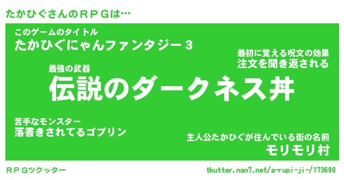 | 料理風あだ名 | 『節約★たかひぐと油揚げの玉子丼』 |