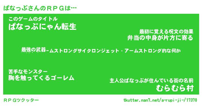| 男性向けラノベタイトル風あだ名 | 『ぱなっぷの憂鬱』 |