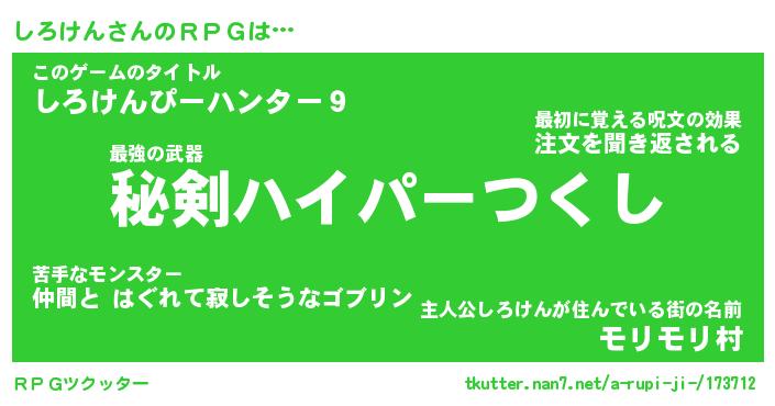 | 男性向けラノベタイトル風あだ名 | 『しろけんの憂鬱』 |