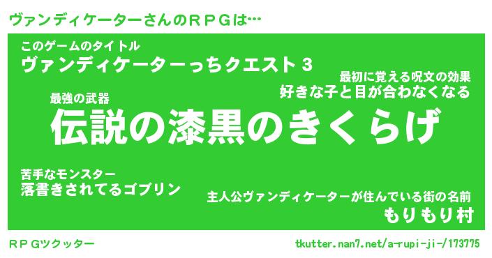| 男性向けラノベタイトル風あだ名 | 『ヴァンディケーターの憂鬱』 |