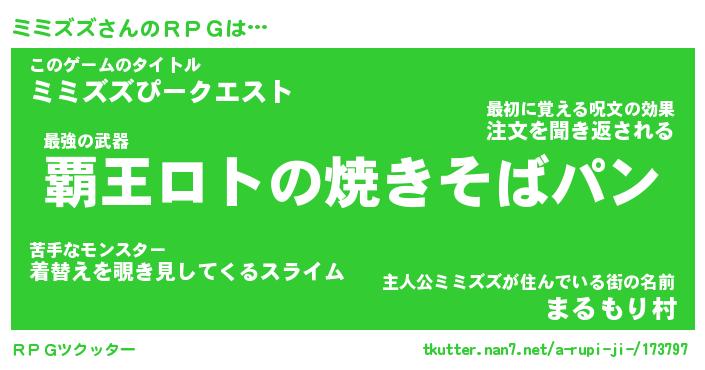 | 胡散臭い通販商品みたいなあだ名 | 『億万長者になれるブレスレット…その名も「ミミズズ」』 |