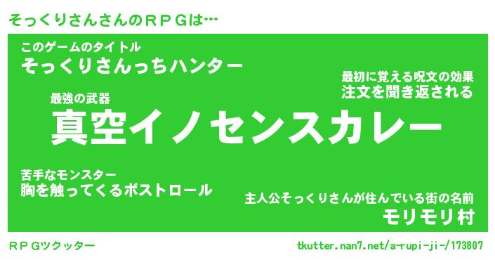 | 男性向けラノベタイトル風あだ名 | 『ソックリサンアートオンライン』 |