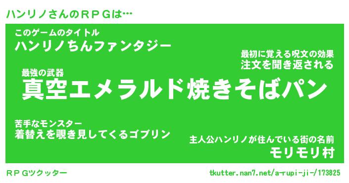 | 男性向けラノベタイトル風あだ名 | 『ハンリノアートオンライン』 |