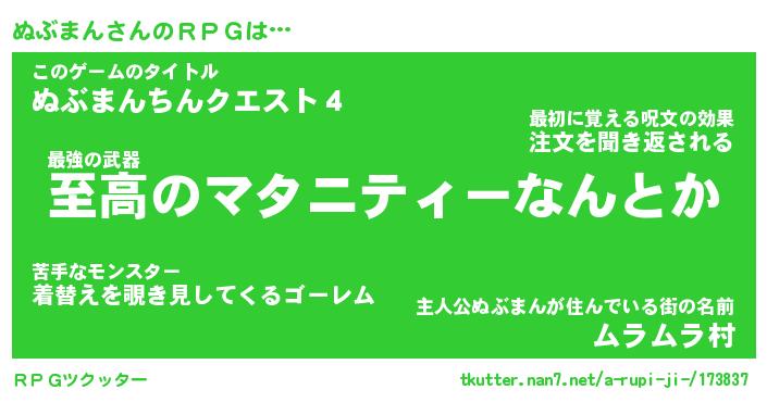 | 胡散臭い通販商品みたいなあだ名 | 『モテモテ間違いなし霊験あらたかなお札…その名も「ぬぶまん」』 |
