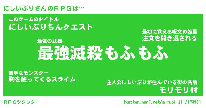 | 男性向けラノベタイトル風あだ名 | 『ニシイブリアートオンライン』 |