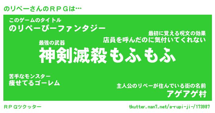 | 男性向けラノベタイトル風あだ名 | 『のリペーの憂鬱』 |