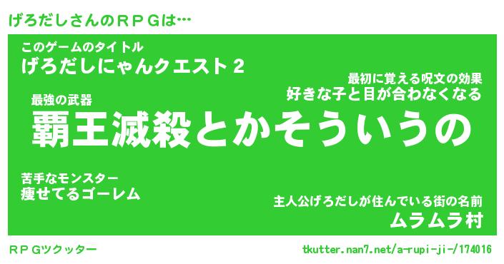 | ファンタジー風あだ名 | 『ゲロフェル』『エターナルゲロダシー』 |