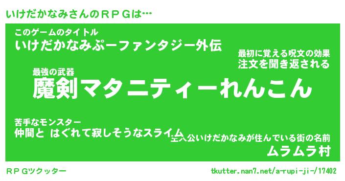 | 胡散臭い通販商品みたいなあだ名 | 『必ず成功する霊験あらたかなお札…その名も「いけだかなみ」』 |