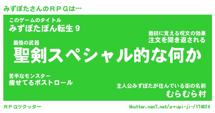 | 男性向けラノベタイトル風あだ名 | 『みずぽたの憂鬱』 |