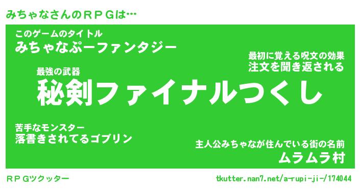 | 胡散臭い通販商品みたいなあだ名 | 『必ず成功するブレスレット…その名も「みちゃな」』 |