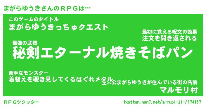 | 胡散臭い通販商品みたいなあだ名 | 『必ず成功する水晶球…その名も「まがらゆうき」』 |