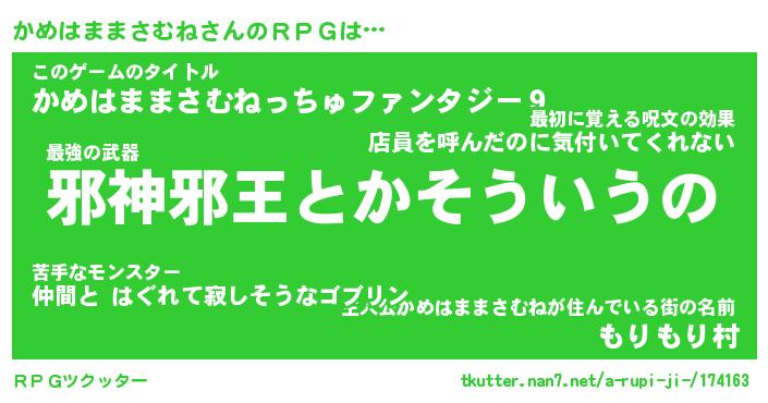 | 胡散臭い通販商品みたいなあだ名 | 『億万長者になれる水晶球…その名も「かめはままさむね」』 |