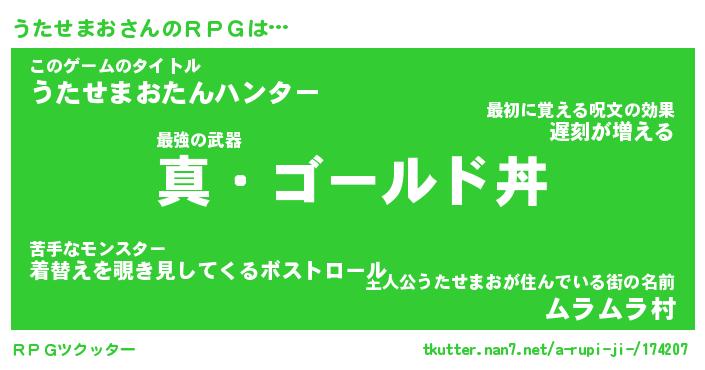 | 伝説のあだ名 | 『封印されし傭兵うたせまお』 |