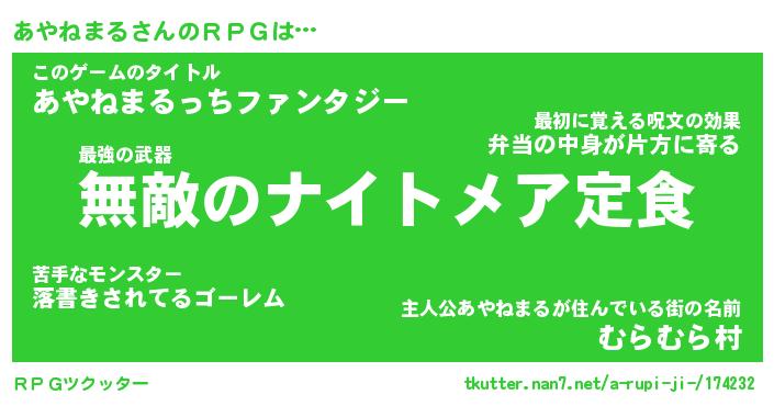 | 男性向けラノベタイトル風あだ名 | 『アヤネマルアートオンライン』 |