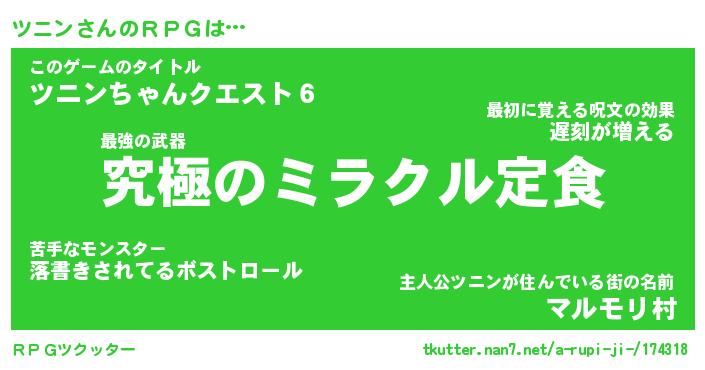 | ファンタジー風あだ名 | 『ツニフェル』『エターナルツニンー』 |