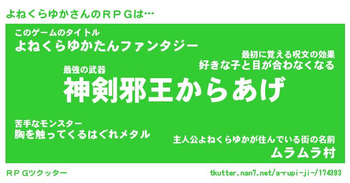 | 伝説のあだ名 | 『不死鳥の傭兵よねくらゆか』 |