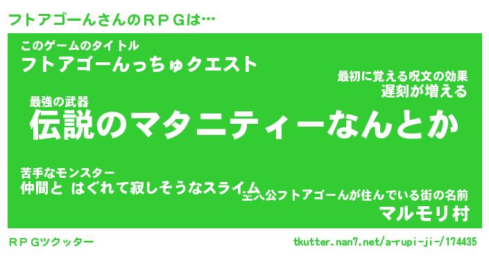 | 男性向けラノベタイトル風あだ名 | 『フトアゴーんの憂鬱』 |