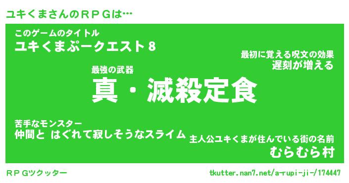 | 男性向けラノベタイトル風あだ名 | 『ユキクマアートオンライン』 |