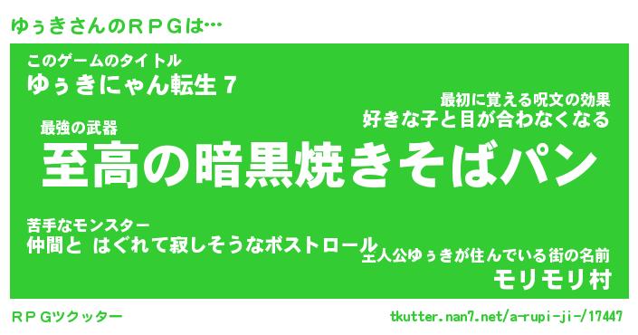 | ファンタジー風あだ名 | 『ユゥフェル』『エターナルユゥキー』 |