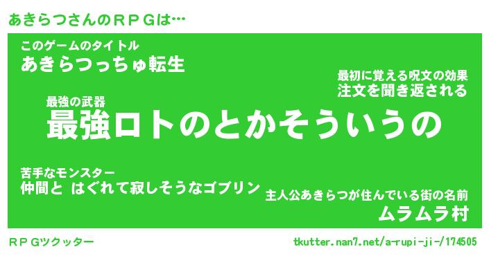 | ファンタジー風あだ名 | 『アキフェル』『エターナルアキラツー』 |