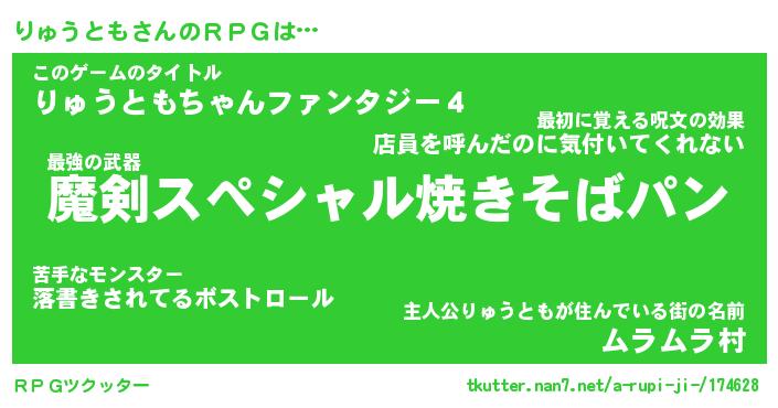 | ファンタジー風あだ名 | 『リュフェル』『エターナルリュウトモー』 |