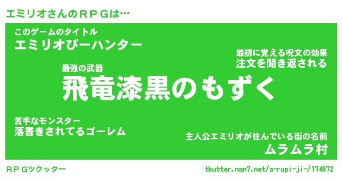 | 伝説のあだ名 | 『封印されしスナイパーエミリオ』 |