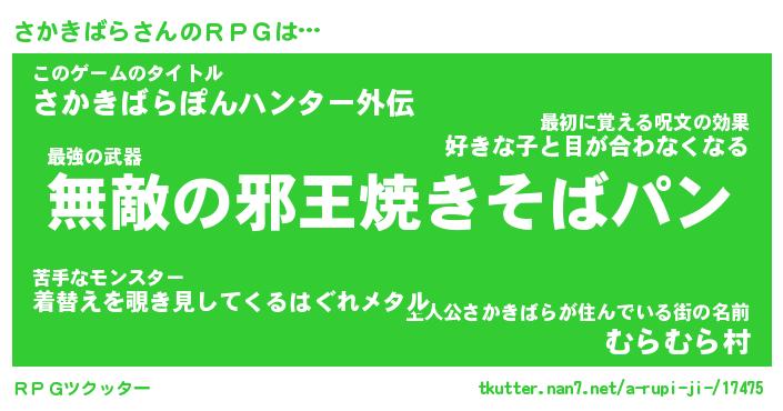 | ヒーロー風カッコイイあだ名 | 『スーパーサカキバラ』『暗黒騎士サカ』 |