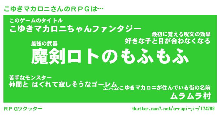 | 男性向けラノベタイトル風あだ名 | 『こゆきマカロニの憂鬱』 |