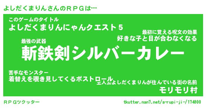 | 男性向けラノベタイトル風あだ名 | 『よしだくまりんの憂鬱』 |