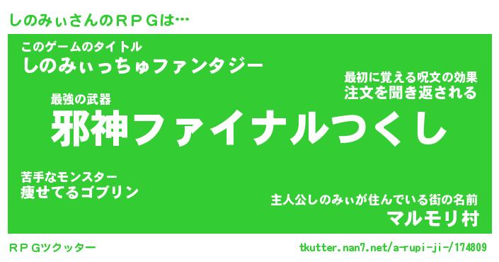| 男性向けラノベタイトル風あだ名 | 『シノミィアートオンライン』 |