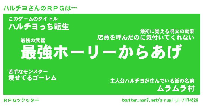 | ファンタジー風あだ名 | 『ハルフェル』『エターナルハルチヨー』 |