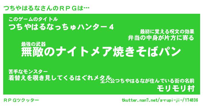 | 男性向けラノベタイトル風あだ名 | 『ツチヤハルナアートオンライン』 |