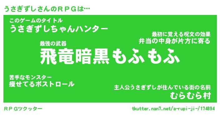 | 伝説のあだ名 | 『封印されし傭兵うさぎずし』 |