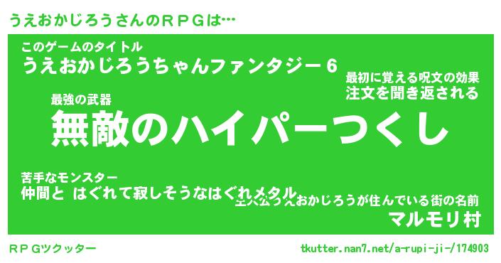 | ピコ太郎風あだ名 | 『ウコ次郎』『ピウ二郎』『ウエ三郎』 |