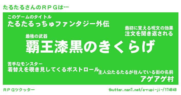 | 胡散臭い通販商品みたいなあだ名 | 『億万長者になれる霊験あらたかなお札…その名も「たるたる」』 |