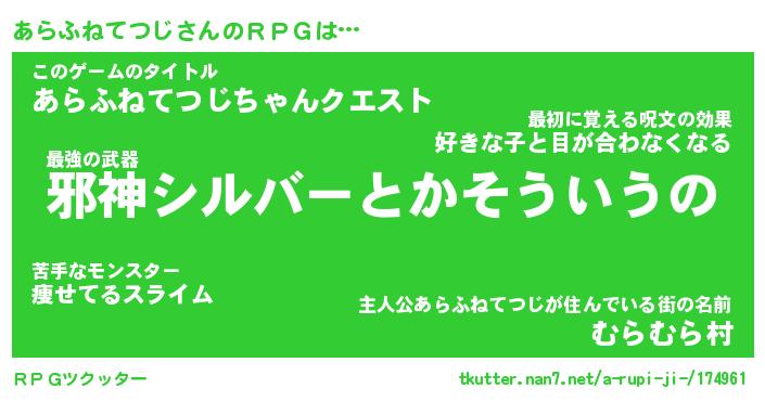 | 男性向けラノベタイトル風あだ名 | 『アラフネテツジアートオンライン』 |
