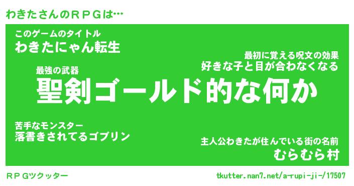 | 男性向けラノベタイトル風あだ名 | 『わきたの憂鬱』 |