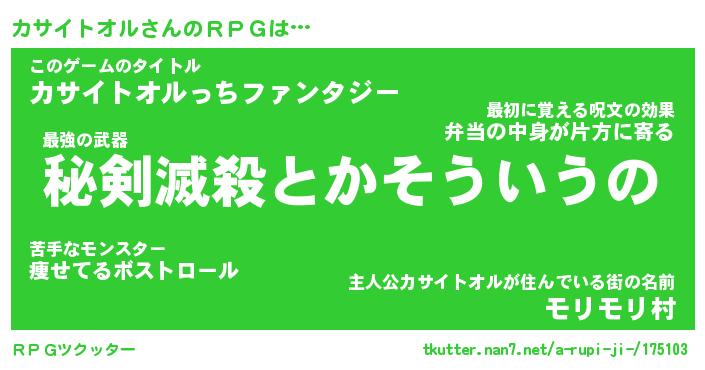| 胡散臭い通販商品みたいなあだ名 | 『モテモテ間違いなし霊験あらたかなお札…その名も「カサイトオル」』 |
