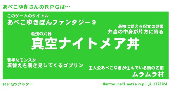 | 男性向けラノベタイトル風あだ名 | 『アベコユキアートオンライン』 |