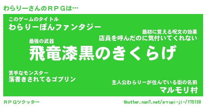 | 胡散臭い通販商品みたいなあだ名 | 『億万長者になれる霊験あらたかなお札…その名も「わらりー」』 |