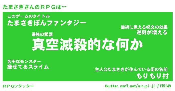 | ファンタジー風あだ名 | 『タマフェル』『エターナルタマサキー』 |