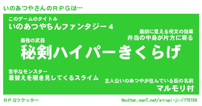 | 男性向けラノベタイトル風あだ名 | 『いのあつやの憂鬱』 |