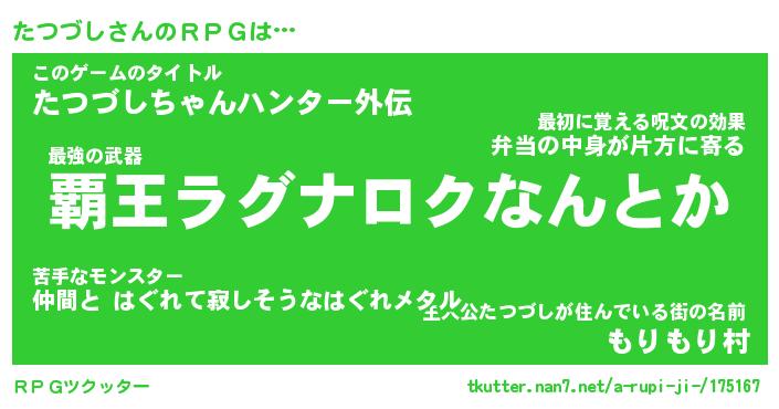 | ファンタジー風あだ名 | 『タツフェル』『エターナルタツヅシー』 |