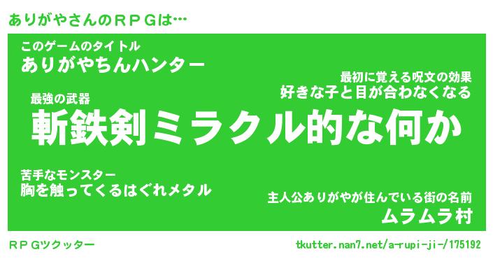 | 伝説のあだ名 | 『伝説の竜騎士ありがや』 |