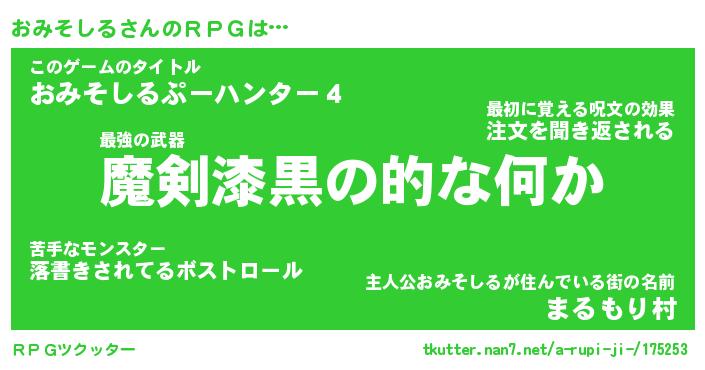 | 伝説のあだ名 | 『伝説のスナイパーおみそしる』 |