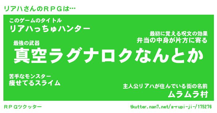 | 男性向けラノベタイトル風あだ名 | 『リアハアートオンライン』 |