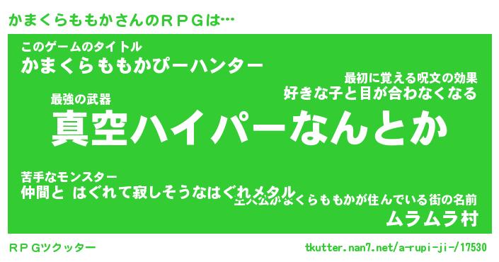| 伝説のあだ名 | 『封印されし竜騎士かまくらももか』 |